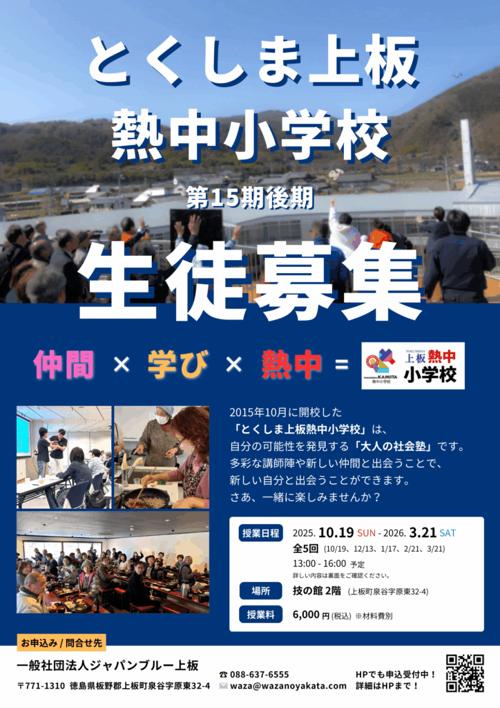 かみいた熱中小学校 第15期後期の生徒募集を開始いたしました!